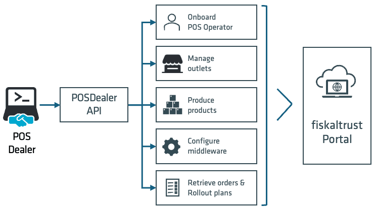 L’API PosDealer de fiskaltrust est conçue pour permettre aux revendeurs de points de vente de disposer de fonctionnalités leur permettant d’intégrer efficacement les opérateurs de points de vente et de gérer leurs installations de middleware. Cette API facilite l’automatisation des tâches telles que la configuration du middleware, la gestion des déploiements de produits et la supervision des comptes des opérateurs de points de vente.